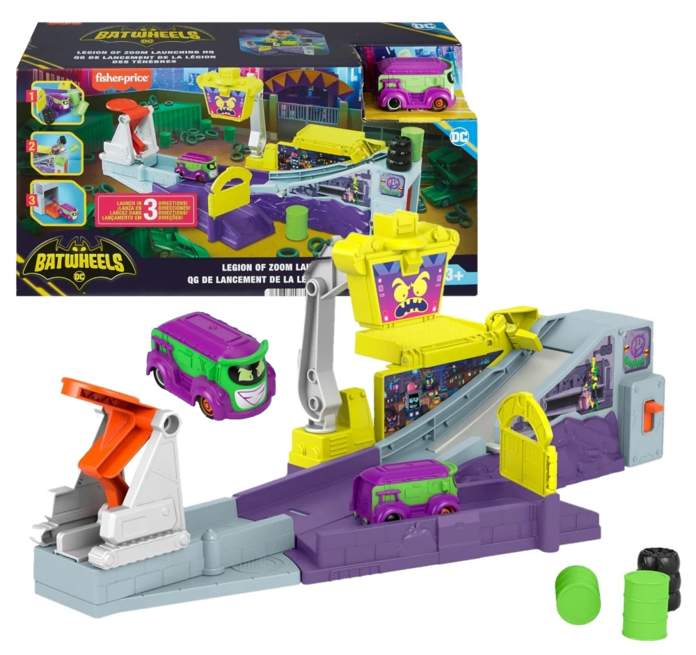 Zoom's Legion ožívá díky rychlému odpalovači, závodění a bourání v této barevné herní sadě s Jokerem.